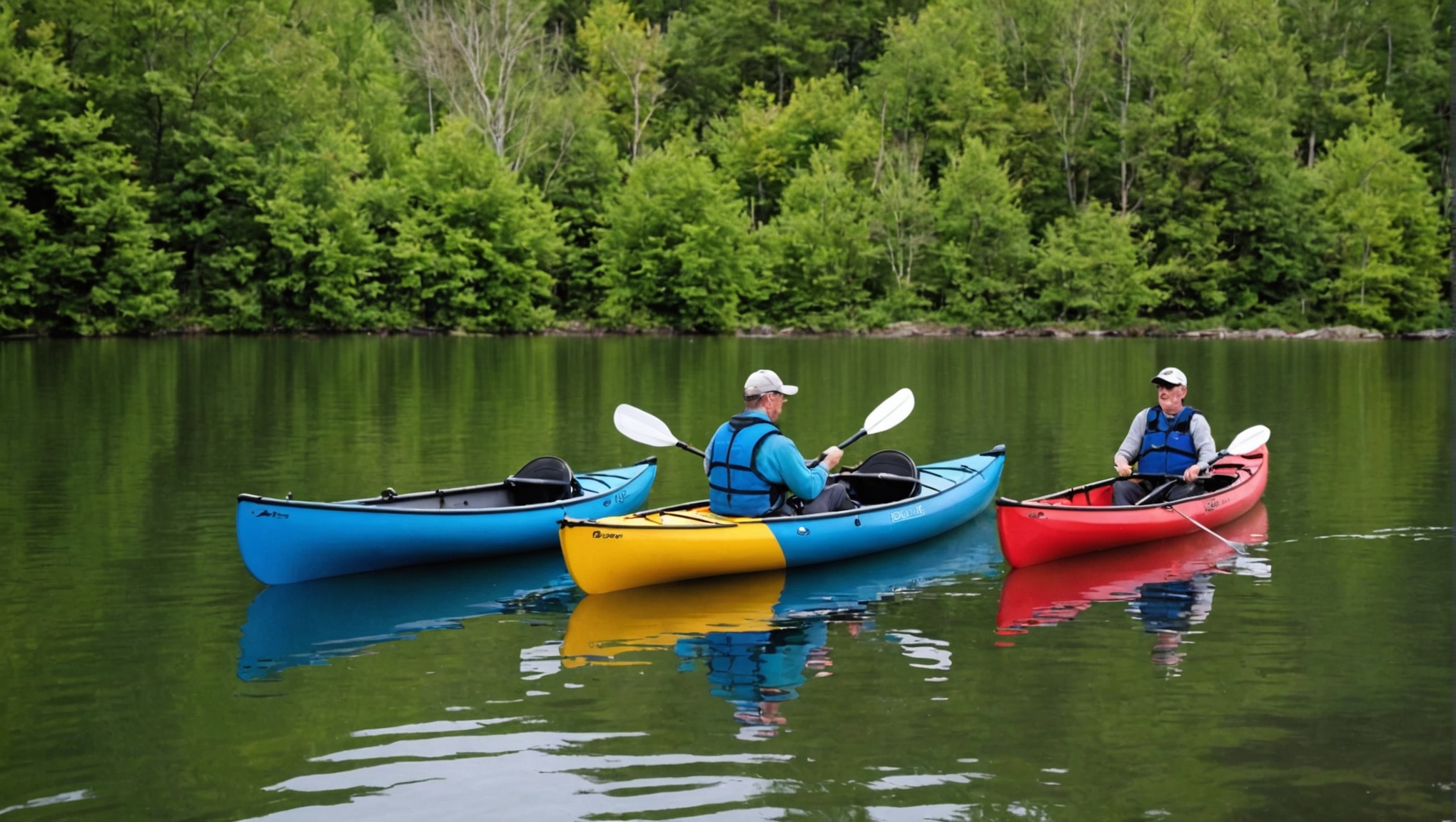 - Kayaks pour eaux calmes : Parfaits pour les lacs et les rivières tranquilles, offrant une stabilité accrue.